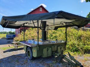 Brukte kjøkken i forskjellig stand, overhalt kjøkken med kontrollerte/overhalte brennere. Kr. 60,000,-. Kan leveres med telt rundt tak, slik at kokevognen i sin helhet er beskyttet mot vær og vind. Dette skaper meget gode arbeidsforhold. Pris teltduk kr. 6,000,- .