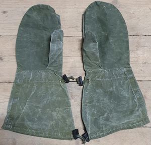 Lange vindvotter i impregnert kanvas. Stramming med strikk og lås både rundt håndledd, og også øverst på votten nedenfor albuen.